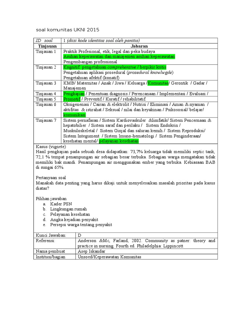 Contoh soal uji kompetensi ukom komunitas keperawatan serta kunci jawaban edisi 184 berikut ini adalah latihan uji kompetensi perawat ukom bagian ke 184 beserta kunci jawabannya serta pembahasannya hai semuanya kita turut prihatin pada akhir tahun 2018 karena sudah terjadi dua kali gempa bumi yang terjadi di daerah lombok serta yang terakhir. Dibawah ini adalah contoh soal uji kompetensi ukom keperawatan komunitas beserta kunci jawaban. Contoh soal uji kompetensi ukom komunitas keperawatan serta kunci jawaban edisi 184 berikut ini adalah latihan uji kompetensi perawat ukom bagian ke 184 beserta kunci jawabannya serta pembahasannya hai semuanya kita turut prihatin pada akhir tahun 2018 karena sudah terjadi dua kali gempa bumi yang terjadi di daerah lombok serta yang terakhir. Contoh kisi kisi soal uji kompetensi keperawatan ners indonesia ke 156. Masalah tujuan rencana sasaran waktu tempat dana pj kegiatan 1.